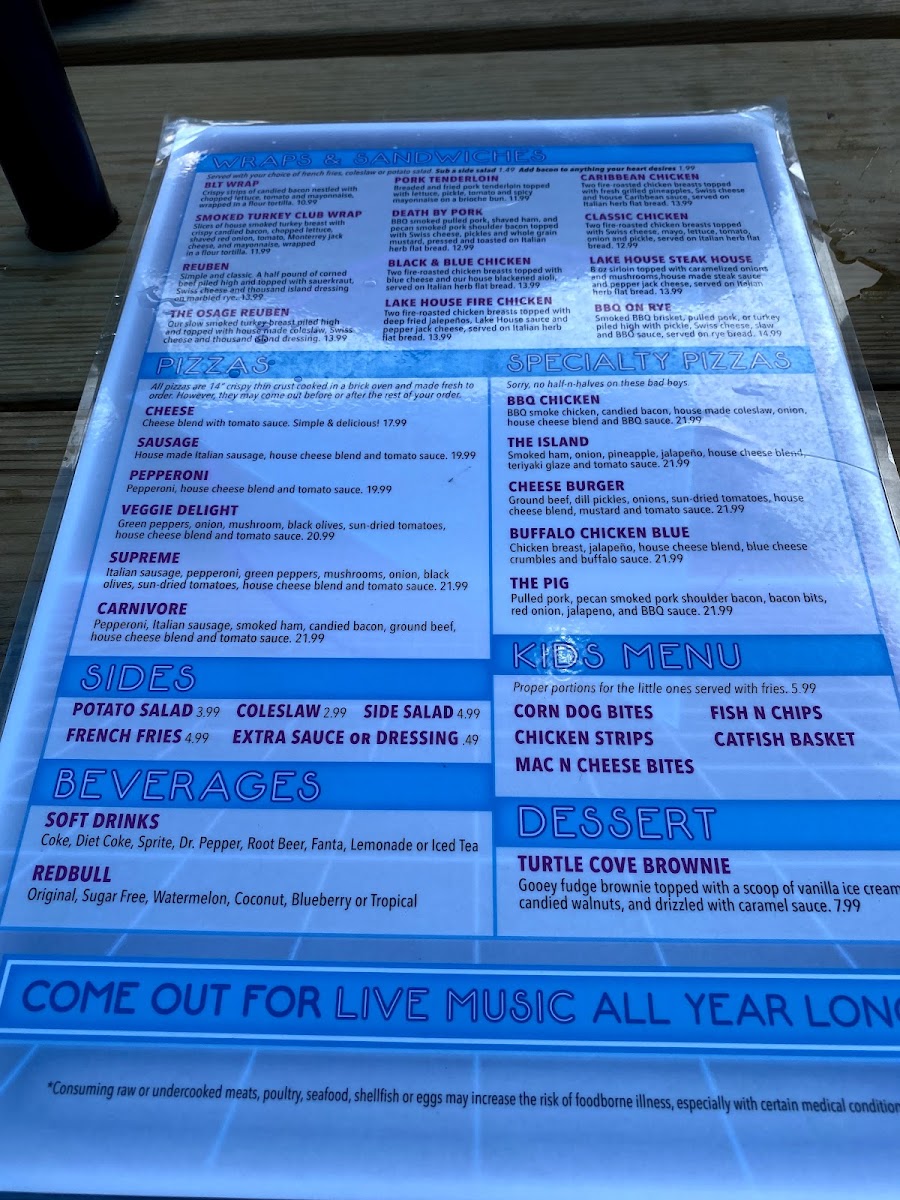 “ Nice place on the lake shore. Indoor and outdoor seating . Area for live music and a dance floor, indoor and outdoor bars. If you like a quieter time sit inside. Good nachos and the cheese curds were great. Chicken strip basket was very good. Kinda of touristy but it's the Ozarks so you have to expect that Parking can get a little tight, they also have places to dock your boat. ”